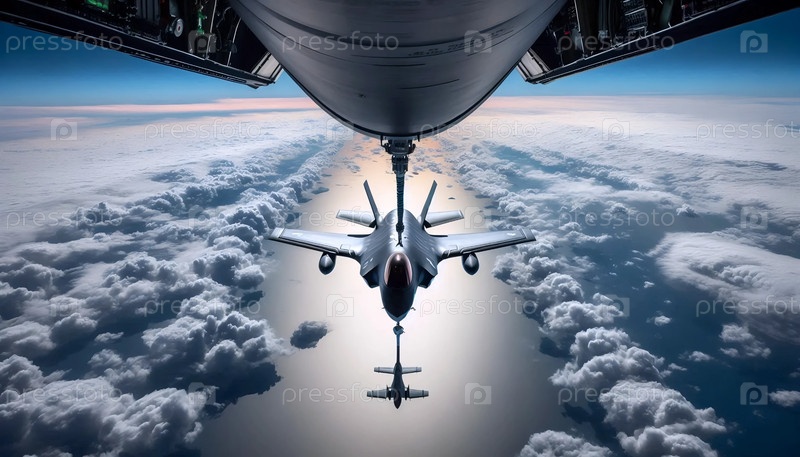 Истребитель заправляется в воздухе из танкера, Ai generated image