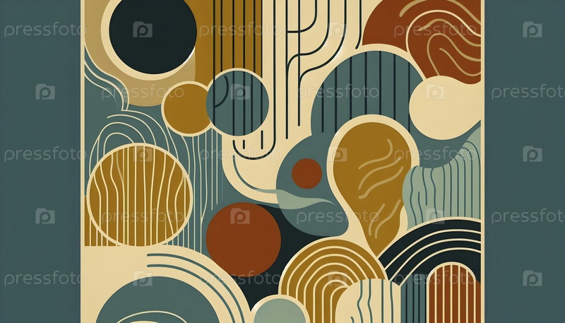 Средневековые современные абстрактные формы детская комната обои - органические формы в горчице, Ai created image