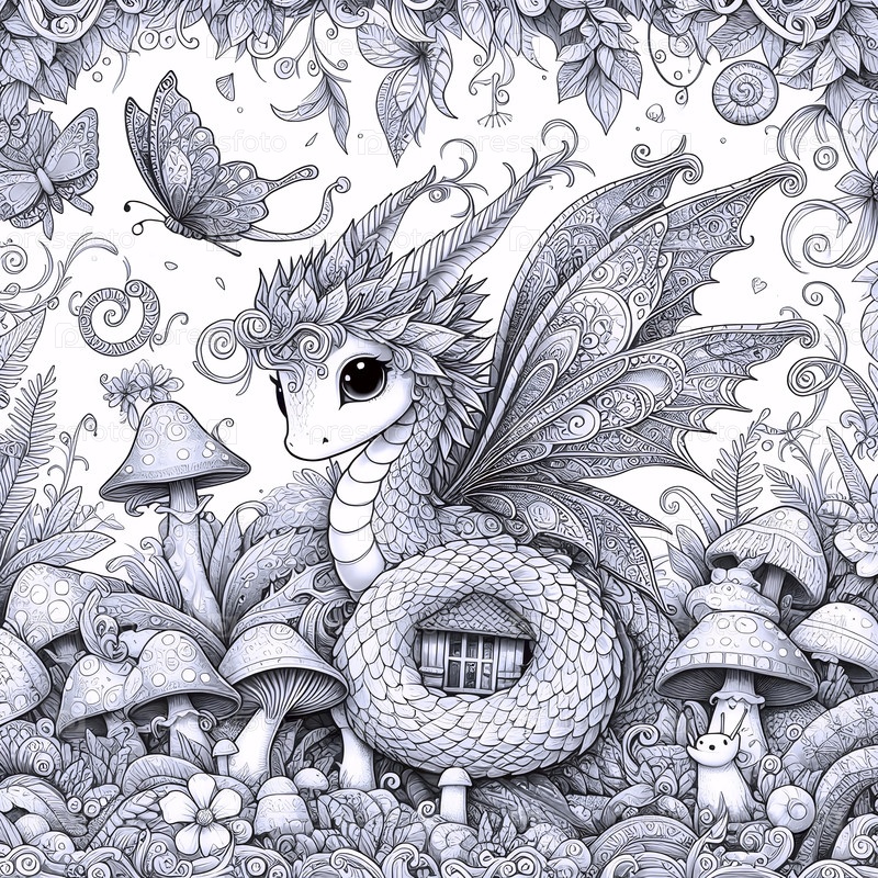 Красочная страница каваи со сложными фантастическими существами, Ai generated image