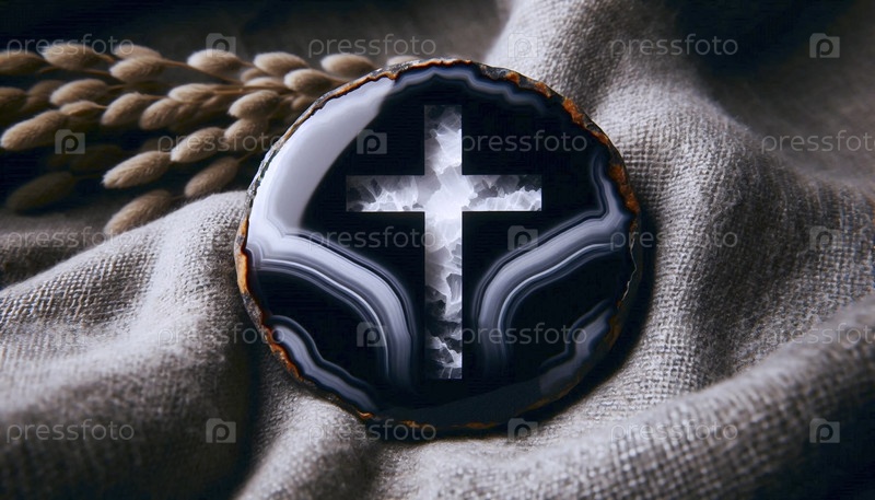 Черный кусок агаты с белым естественным крестообразованием, Ai generated image