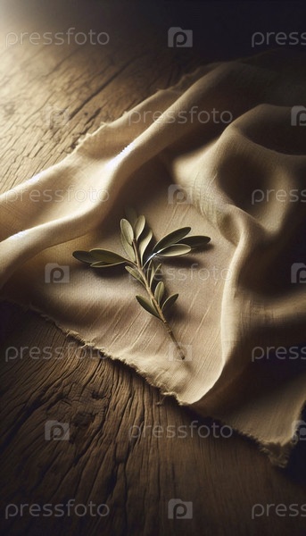 Минимальный крест из оливковых ветвей на льне, Ai generated image