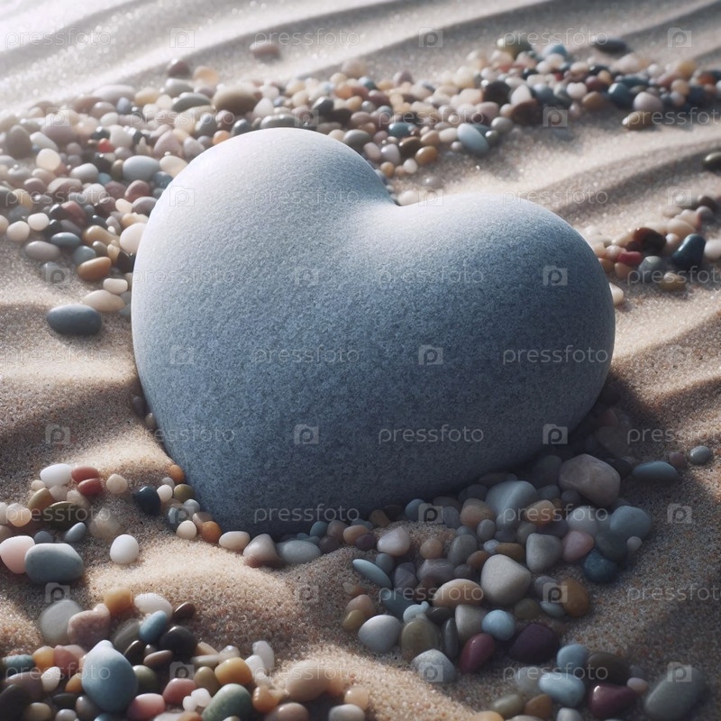Камень в форме сердца на ложе речных камней, Ай создал изображение