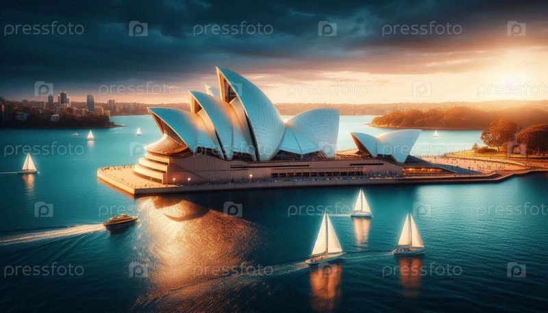 Сиднейский оперный театр в полдень, Ai generated image