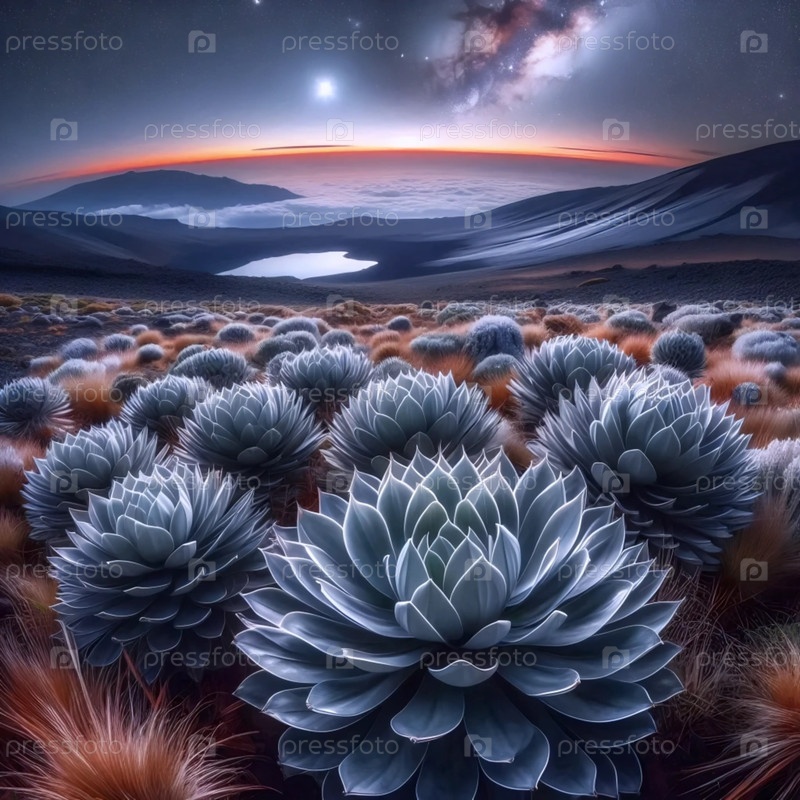 Растение серебряного меча на вулканических склонах, Ai generated image