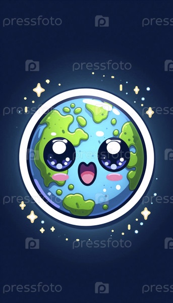 Милый стикер кавайи о удивительной планете Земля, Ai generated image