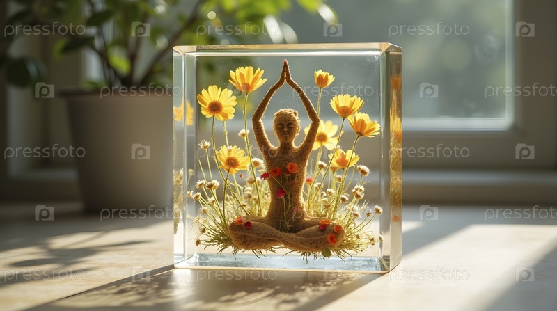 Прозрачный акриловый блок йоги, Ai generated image