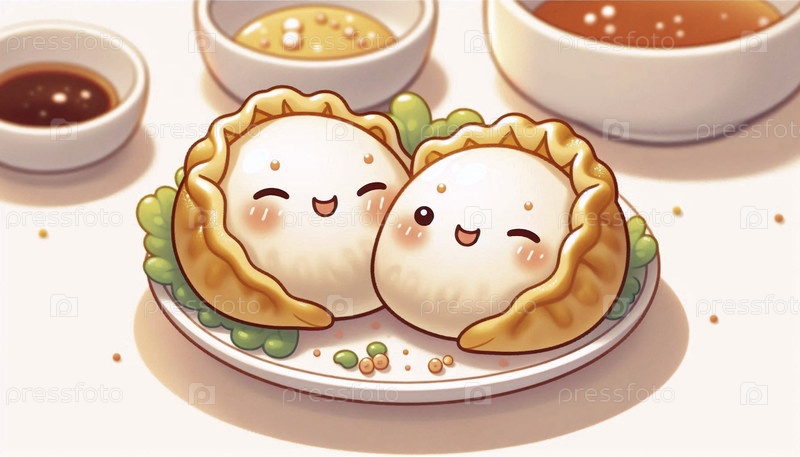 Забавная иллюстрация кавайев, обнимающих блины, Ai generated image