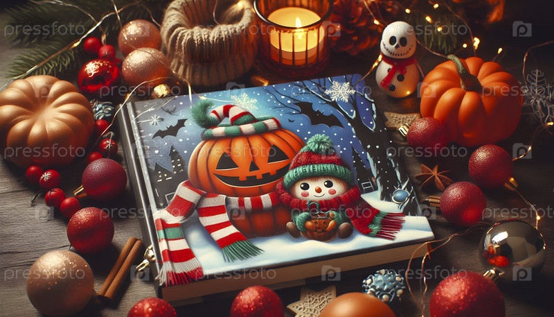 Праздничное Рождество и Хэллоуин детская книга, Ai created image