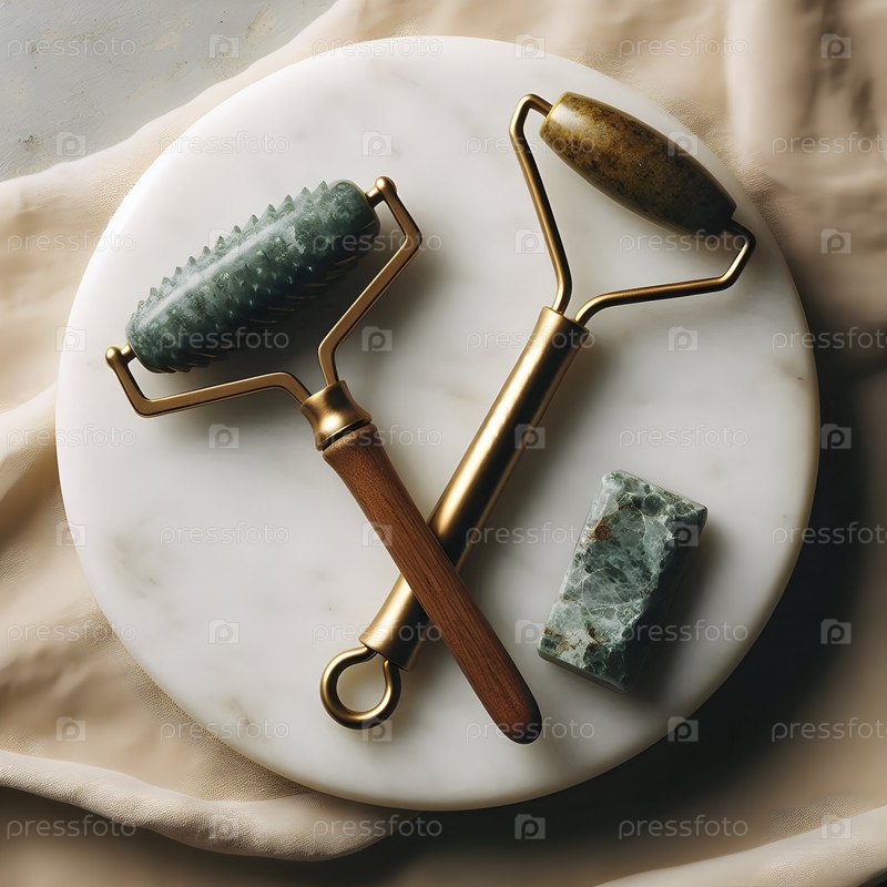 Аюрведический ролик из нефрита на мраморной плите, Ai created image