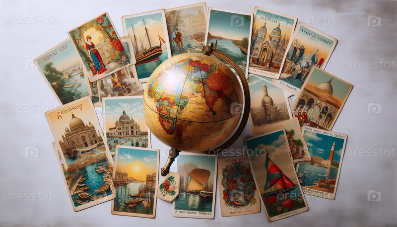 Коллекция красочных туристических открыток из знаковых городов, Ai generated image