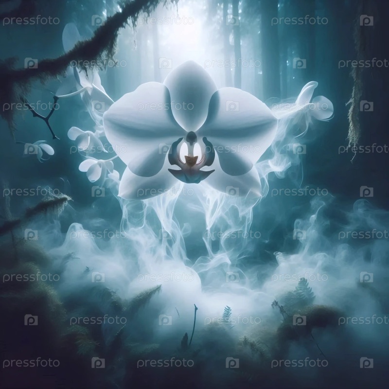 Призрачная орхидея плавает в тумане, Ai generated image A