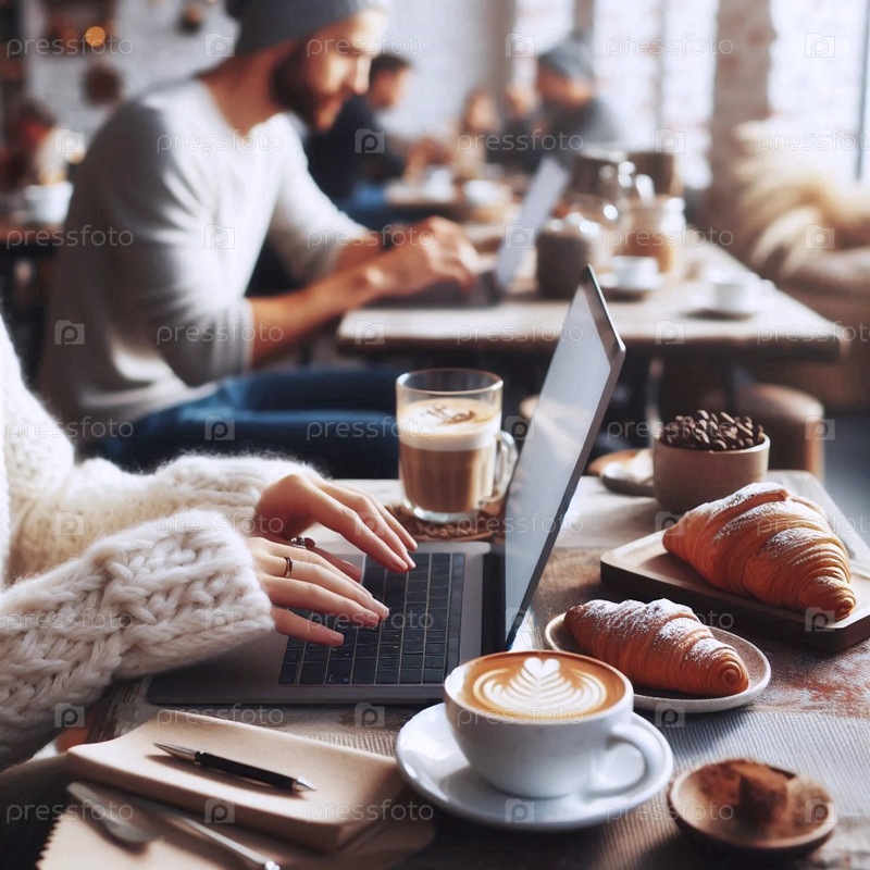 Руки, печатающие на клавиатуре в творческой атмосфере рабочего пространства, Ai generated image