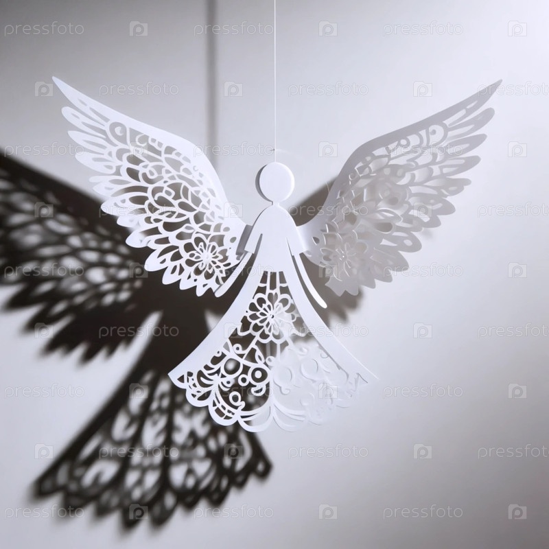 Силуэт ангела из вырезанной бумаги со светом, проходящим через него, Ai generated image