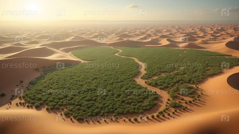 Пустынные сельскохозяйственные угодья преобразованы конденсаторами воды из воздуха, Ai generated image
