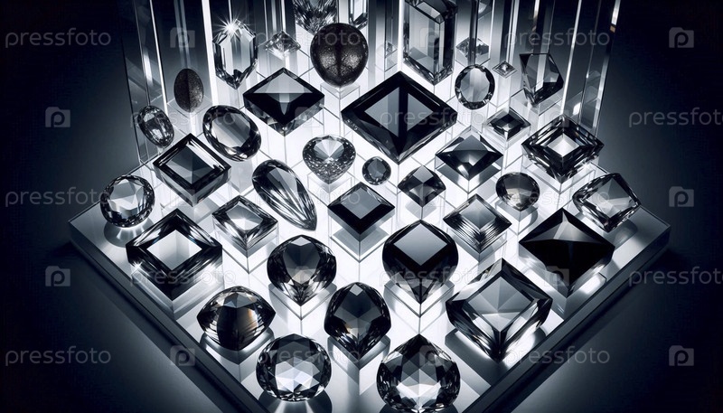 Плоский слой различных резанных драгоценных камней бриллианты, оникс расположен по размеру на лайтбоксе, Ai generated image