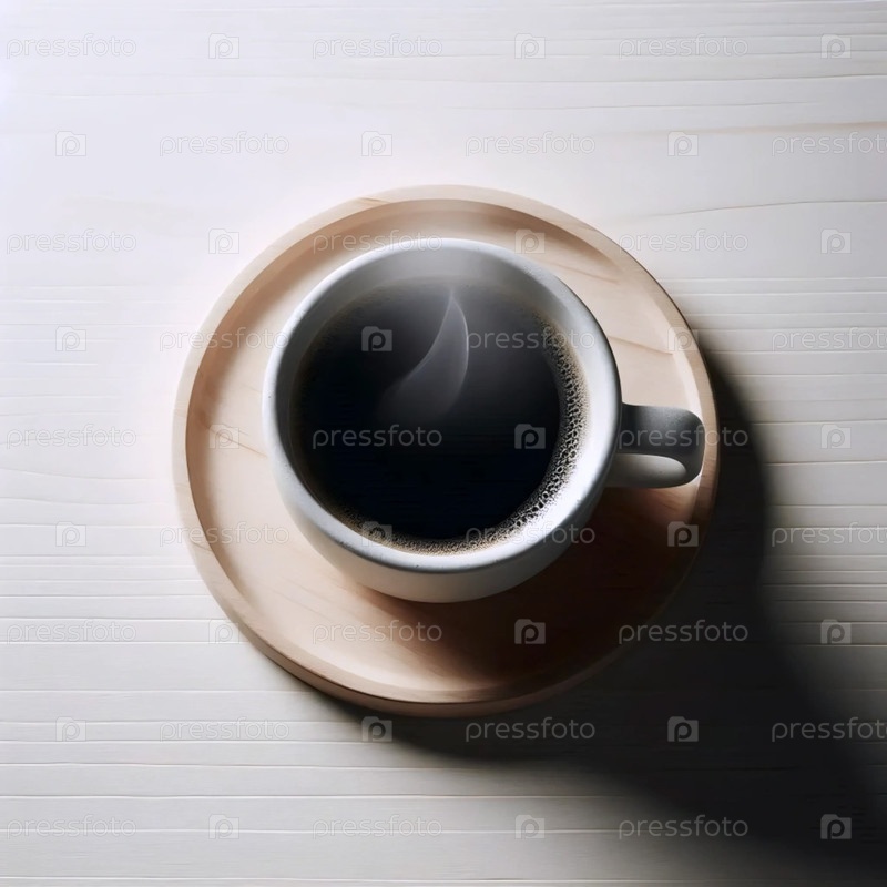 Выпаривание черного кофе в белой чашке, Ai generated image