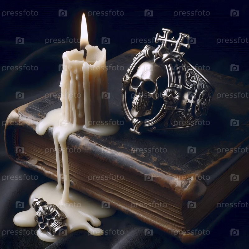 A momento mori ring с крестом и черепом, натюрмортом, Ai generated image