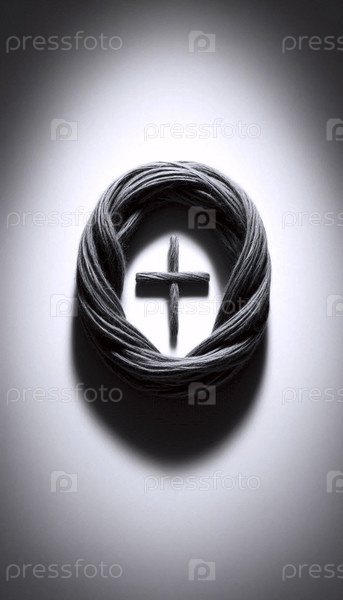 Одна грубая шерстяная нить, образующая петлю вечности и крест, Ай создала изображение