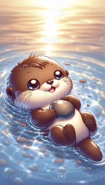 Подробная иллюстрация кавайской выдра с галочкой, Ai generated image