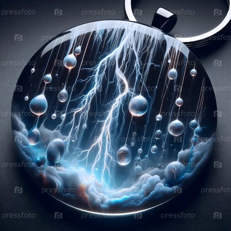Молот из смолы с пузырями дождевых капель и эффектом молнии, Ai generated image