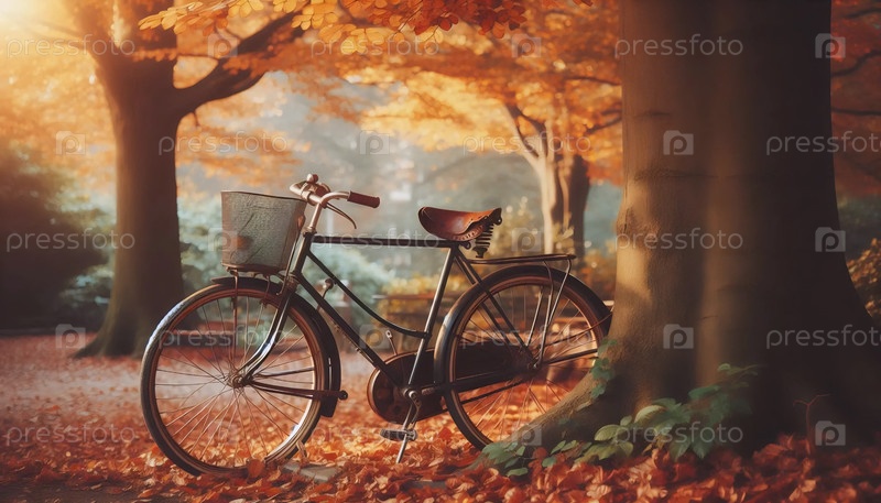 Ретро-велосипед с кожаным седлом в парке, Ai generated image