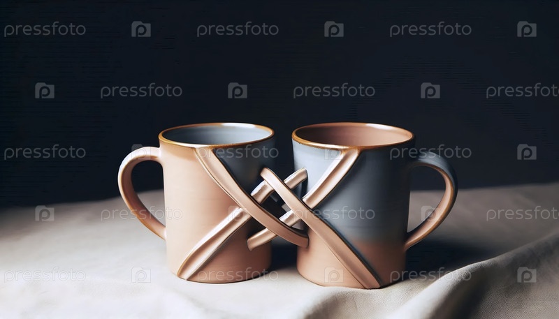Набор глиняных свадебных чашек с взаимосвязанными перекрестными ручками, Ai generated image