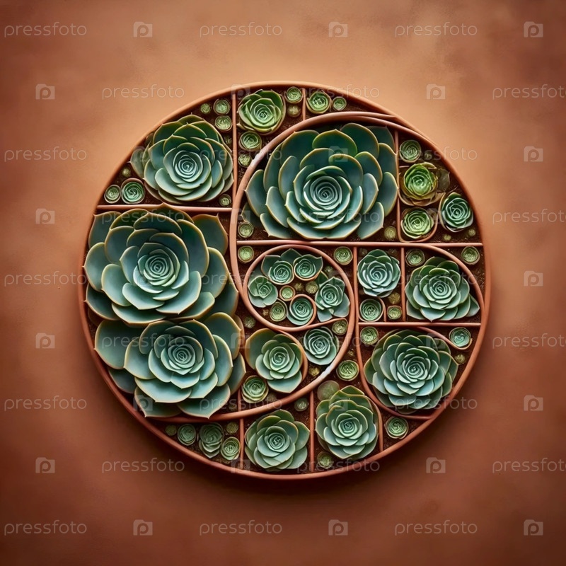 Суккуленты Фибоначчи лежат плоско, Ai generated image