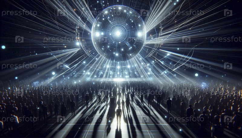 Сцена в ночном клубе с одним гигантским дискотечным шаром, отражающим красочные лазерные лучи во всех направлениях, Ai generated image