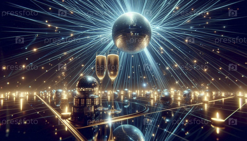 Сцена в ночном клубе с одним гигантским дискотечным шаром, отражающим красочные лазерные лучи во всех направлениях, Ai generated image