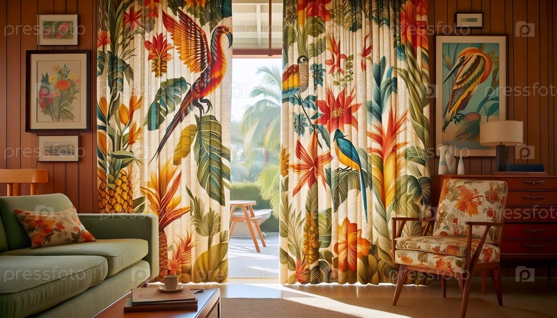 Retro barkcloth drapes, Ai создал изображение