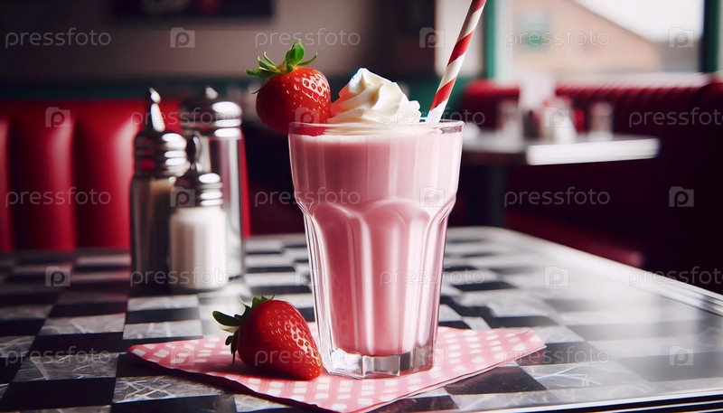 Винтажный молочный коктейль, подаваемый в классическом столовом стакане 1950-х годов Ai generated image