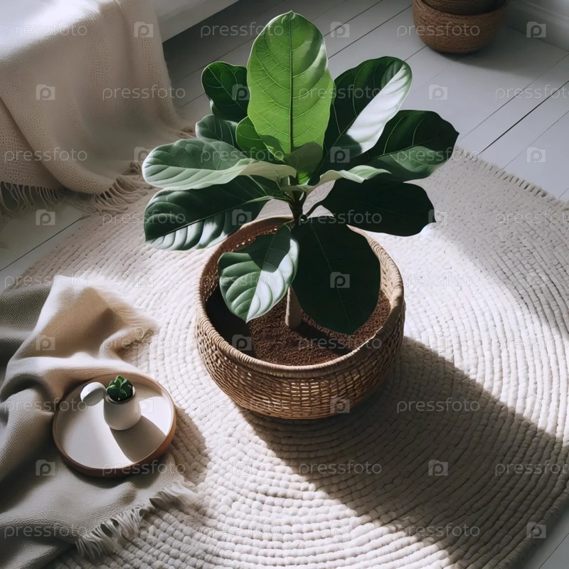 Дрянь из листьев скрипки в тканевой корзине, Ai generated image