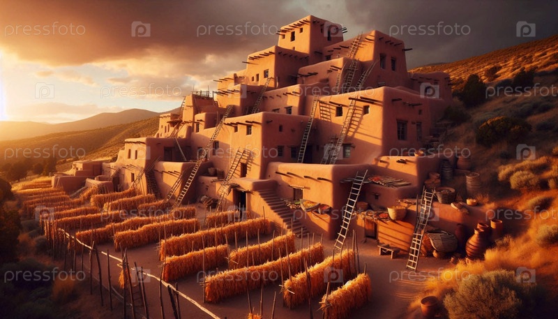 Коренные американцы Adobe Pueblo, AI generated image