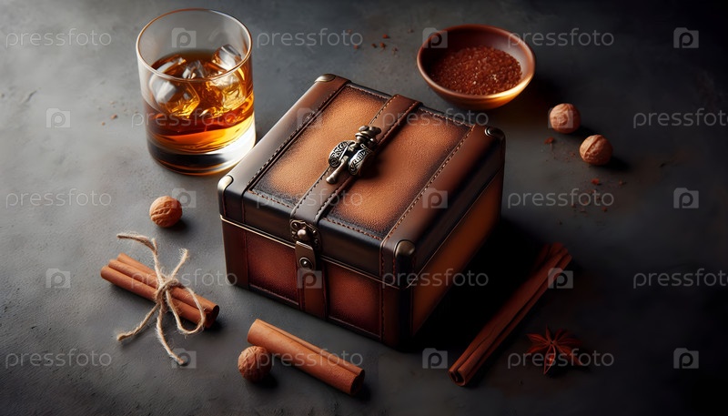 Подарочная коробка с виски, изображение создано AI