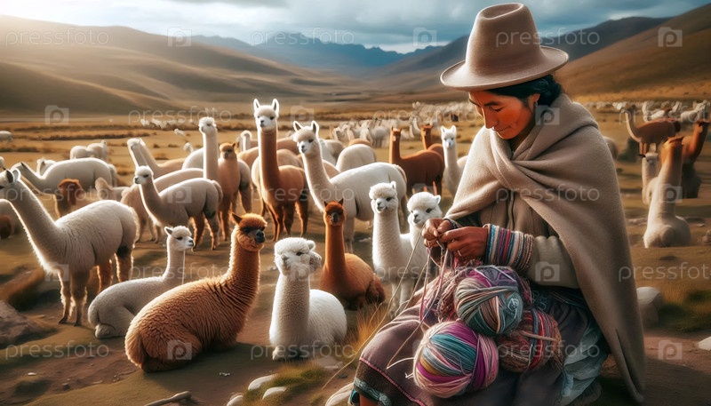 Перуанское вязание шерсти альпаки, AI generated image