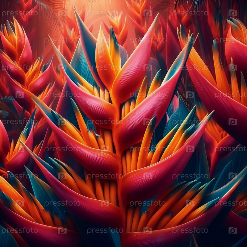 Огненно-красный тропический хеликония ближайший план, Ai generated image