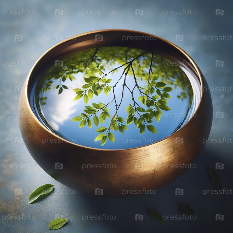 Отражение дерева в миске с неподвижной водой, Ai generated image
