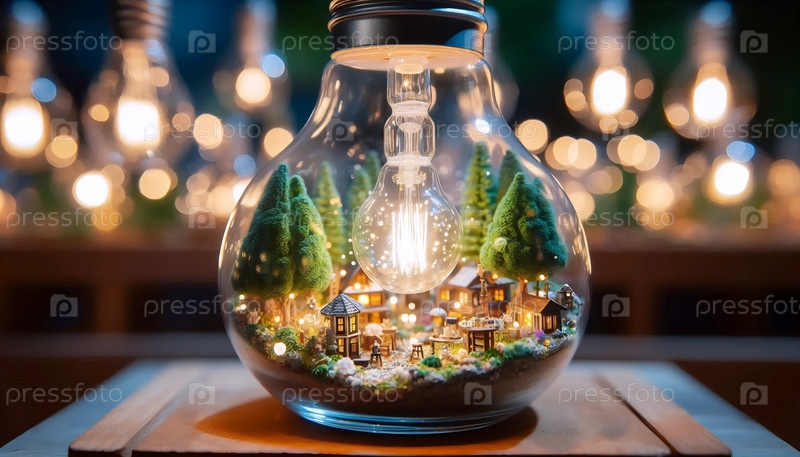 Миниатюрная сцена внутри лампочки, Ai generated image
