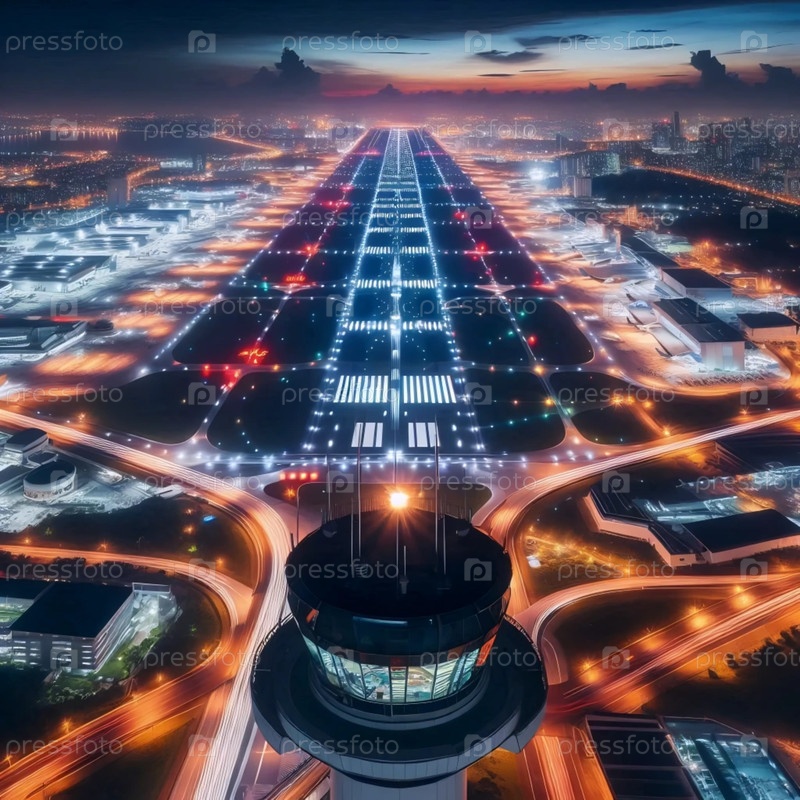 Вид с вышки управления воздушным движением ночью, Ai создал изображение