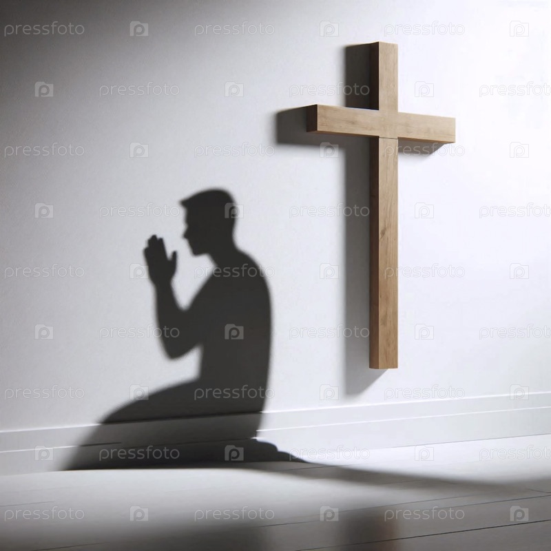 Тень человека в молитве, брошенная на стену с крестом, Ай создала изображение