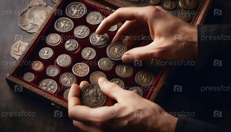 Экран коллекции античных монет, Ai generated image