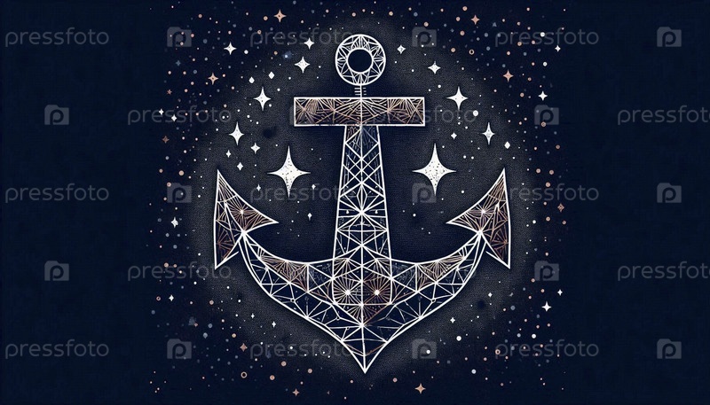 Геометрический символ якоря на тёмно-индиго текстурированном фоне, Ai generated image