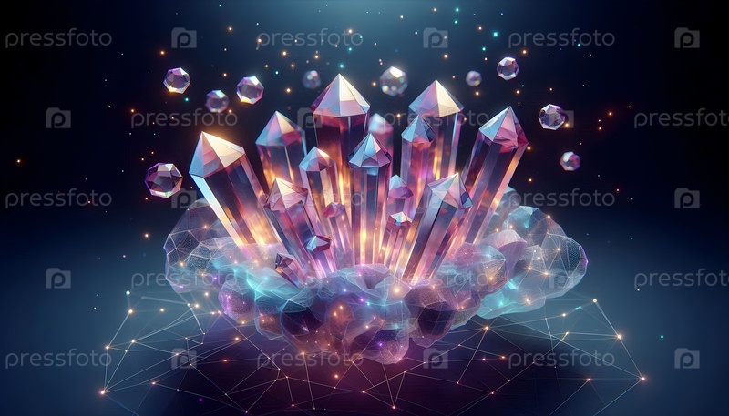 Плавучие кристаллы с преломлением света, изображение создано с использованием Ai
