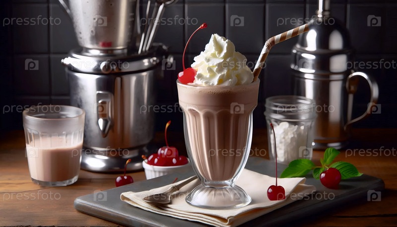 Винтажный молочный коктейль, подаваемый в классическом столовом стакане 1950-х годов Ai generated image