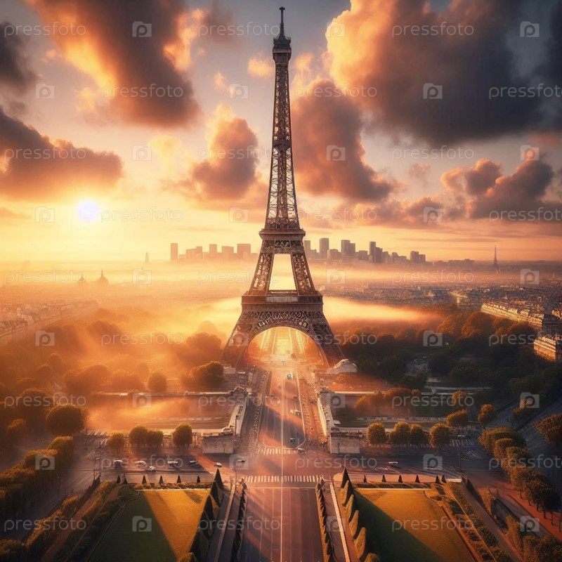 Эйфелева башня на восходе солнца, Ai generated image