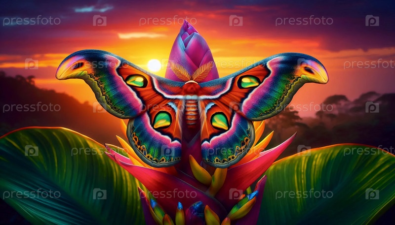 Закатная бабочка на цвете, Ai generated image