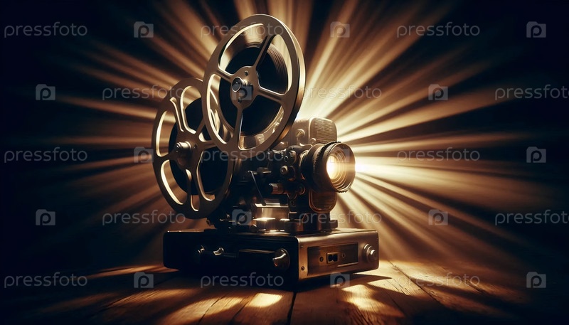 Советский кинопроектор в темной комнате, Ai generated image A