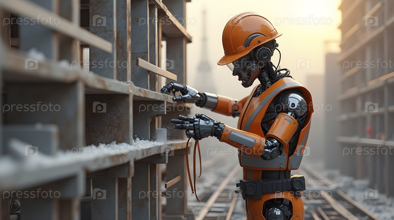 Роботизированный строительный работник собирает здание с точностью, Ai generated image