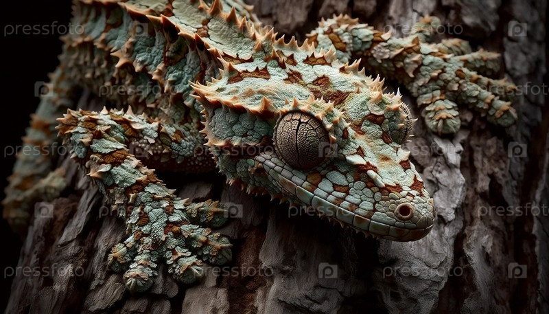 Камуфлированный гекон с листовым хвостом, Ai generated image