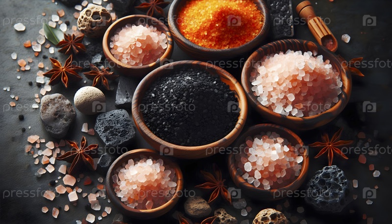 Вулканическая черная соль и розовые кристаллы гималайской соли, Ai created image